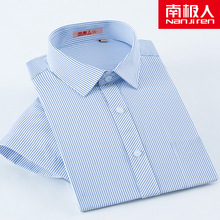 南极人男青年职业短袖衬衫 男士夏季细格子工装休闲商务条纹衬衣