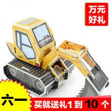 3d立体拼图纸质手工DIY 儿童玩具城堡模型制作拼插亲子工程车飞机