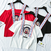 2017夏韩国美女印花个性字母吊带露肩上衣百搭显瘦短袖T恤女装潮