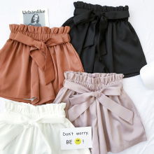 2017夏装韩国东大门纯色蝴蝶结绑带花苞型高腰显瘦阔腿裤短裤热裤