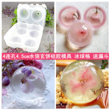直径4.5cm四连孔樱花水信玄饼硅胶模具 冰球格 果冻布丁模 送漏斗