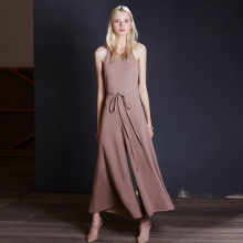 欧美夏装新款性感吊带交叉露背蝴蝶结系带高腰阔腿裙裤连体裤6391
