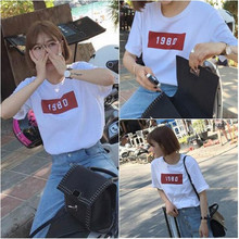 2017春夏新款韩版宽松显瘦白色简约数字圆领短袖圆领上衣T恤女装
