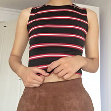 欧美短款针织背心夏季韩版显瘦条纹气质百搭无袖上衣女高腰吊带潮