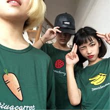 夏装新款韩国学生卡通水果香蕉草莓萝卜短袖女刺绣T恤宽松潮
