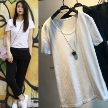 韩国东大门纯棉短袖白T恤女字母修身显瘦半袖上衣竹节棉打底衫潮