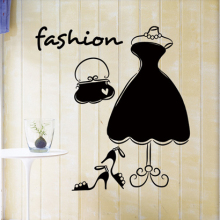 时尚 服装店铺橱窗玻璃 女衣帽间架 温馨浪漫装饰 背景墙贴纸