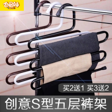 百易特S型铁艺多层裤夹裤架多功能挂裤子的衣架衣柜收纳防滑架子