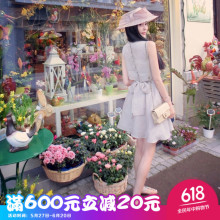 sandro moscoloni2017夏季新款女装小清新雪纺蓬蓬连衣裙a字裙子