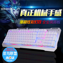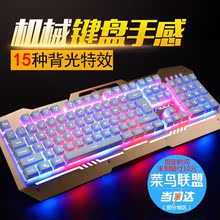 狼蛛斩月7色跑马背光键盘发光网吧电竞lol游戏机械手感金属键盘