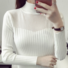 2017春装蕾丝打底衫女长袖短款紧身套头毛衣薄款性感半高领针织衫