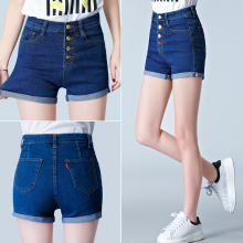 韩国排扣高腰牛仔短裤女夏mm大码显瘦休闲弹力修身卷边热裤薄款潮