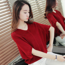 春装针织衫2017新款套头毛衣春秋季外套女装韩版宽松蝙蝠袖学生薄