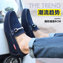 高佬男士内增高休闲男鞋6cm套脚隐形增高驾车豆豆鞋真皮磨砂皮鞋
