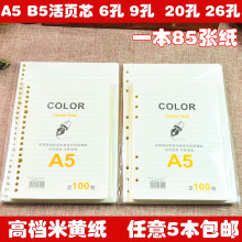 文章文具米黄纸A5B5活页本内芯活页纸活页芯替芯6孔9孔20孔26孔