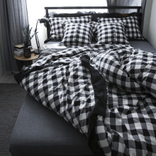 简约北欧风水洗棉蕾丝花边纯棉格子床笠床裙款四件套全棉床上用品