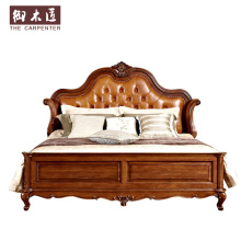 御木匠 新美式全实木床 1.8米欧式真皮公主双人婚床 卧室家具包邮