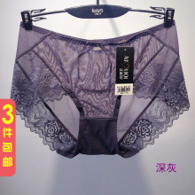 3条包邮 透视蕾丝网纱面料性感平角中腰透明超薄诱惑女士无痕内裤