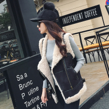 AM高端定制2016冬新款西班牙皮毛一体外套女中长款羊羔毛皮草马甲