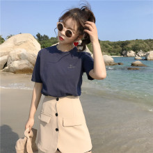 夏季韩版复古港味字母印花短袖T恤+单排扣A字半身裙显瘦两件套装