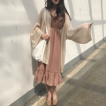 春季韩版chic纯色单排扣休闲短款毛衣外套学生薄款针织披肩开衫女