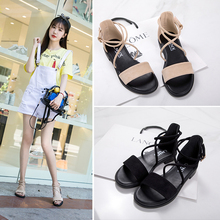 靓妞平底凉鞋女学生夏2017新款百搭时尚绑带凉鞋平跟女鞋罗马凉鞋