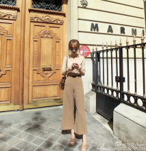Alice&W 2017春装新款韩版裤子直筒高腰阔腿裤女雪纺休闲长裤