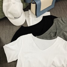 小番茄定制2017夏季短袖T恤女纯色韩版学生百搭打底衫V领简约上衣