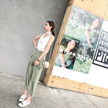 小番茄定制2017夏季阔腿裤女九分裤高腰休闲阔脚裤宽腿裤宽松西裤