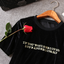 韩国代购潮牌女装刺绣字母上衣韩版百搭学生金丝绒短袖t恤女 夏