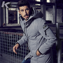 Kuegou 男士外套冬季 男修身棉服大衣 男装中长款棉衣棉袄潮21606