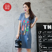 欧洲站连衣裙 夏款2017新款时尚百搭短裙女士牛仔裙 宽松直筒裙子