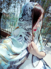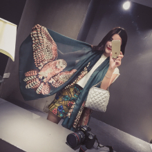 猫头鹰超大围巾空调披肩两用女沙滩巾超长春秋天防晒丝巾纱巾夏季