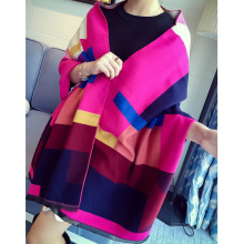 艳丽2016秋冬新款拼色彩色羊绒软质双面两用围巾披肩女加厚保暖