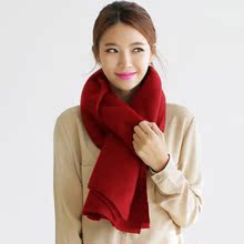 节日送礼 高档羊绒围巾女大红色秋冬季超长加厚羊毛纯色围脖韩版