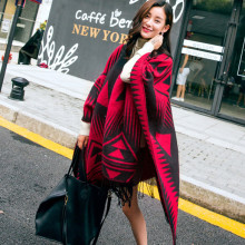 秋冬季新款民族风开叉斗篷披风红黑色流苏超大加厚围巾披肩两用女