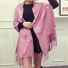 2015秋冬季新款 天鹅仙鹤刺绣手工羊绒围巾披肩两用保暖围巾女