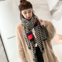 欧蒂姿秋冬季女士围巾千鸟格加厚长款仿羊绒披肩双面百搭保暖围巾