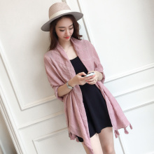 欧蒂姿韩国夏季学生纯色流苏仿羊绒围巾空调披肩保暖超大女夏季