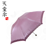 天堂伞正品三折超轻黑胶遮阳伞防晒伞防紫外线晴雨伞太阳伞蕾丝边