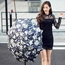 百合花折叠雨伞太阳伞女创意防紫外线晴雨伞黑胶防晒时尚遮阳伞