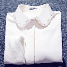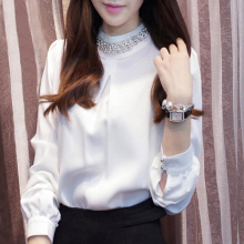 衬衫女夏装2017韩版修身雪纺加绒长袖韩范百搭翻领打底白色衬衣