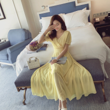 2017夏季新款仙女连衣裙女韩版修身显瘦气质海边度假沙滩雪纺长裙