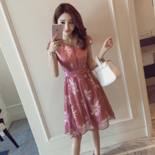 夏季新款女装韩版无袖蕾丝连衣裙修身显瘦韩版复古小清新背心裙