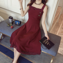2017新款夏季优雅气质修身显瘦韩版背带连衣裙女吊带大摆中长裙子