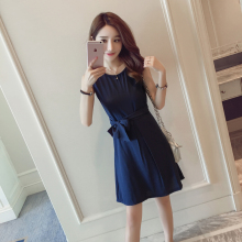 夏季2017韩版时尚优雅气质淑女装连衣裙修身显瘦雪纺背心裙
