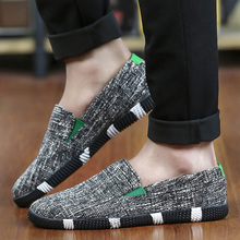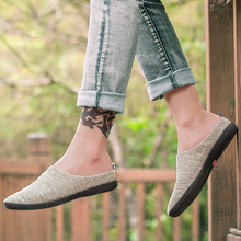 夏季亚麻布鞋男士帆布鞋韩版懒人休闲板鞋潮鞋一脚蹬男鞋子老北京