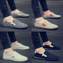 夏季男鞋子韩版豆豆鞋男士帆布休闲鞋潮流一脚蹬懒人蹬老北京布鞋
