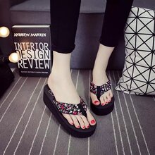 厚底人字拖女坡跟防滑夏季休闲沙滩黑色高跟碎花松糕韩版潮凉拖鞋