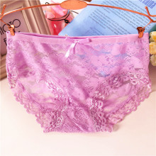 蕾丝女士性感透明网纱内裤 纯棉档蕾丝面料速干诱惑中腰三角内裤